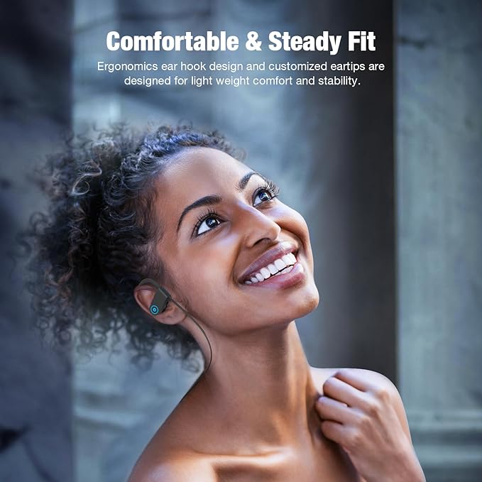 - 【IPX7 Waterproof Headphones】 Adopting highly sealed shell + nano-coating waterproof technology, this headphones waterproof performance reaches IPX7 waterproof standard, and it is not afraid of sweat attack even if it is used in severe sports. Great for running, hiking, cycling, fitness, yoga, travel, gym etc.