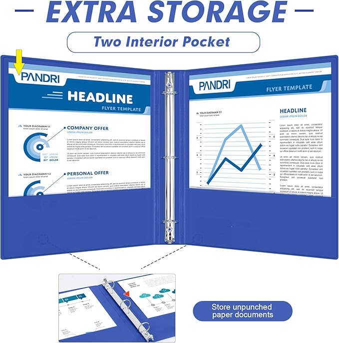 - LARGE CAPACITY: With a spacious 1 inch round-ring mechanism, this binder can hold a generous amount of documents, and the 2 interior pockets can also store unpunched documents