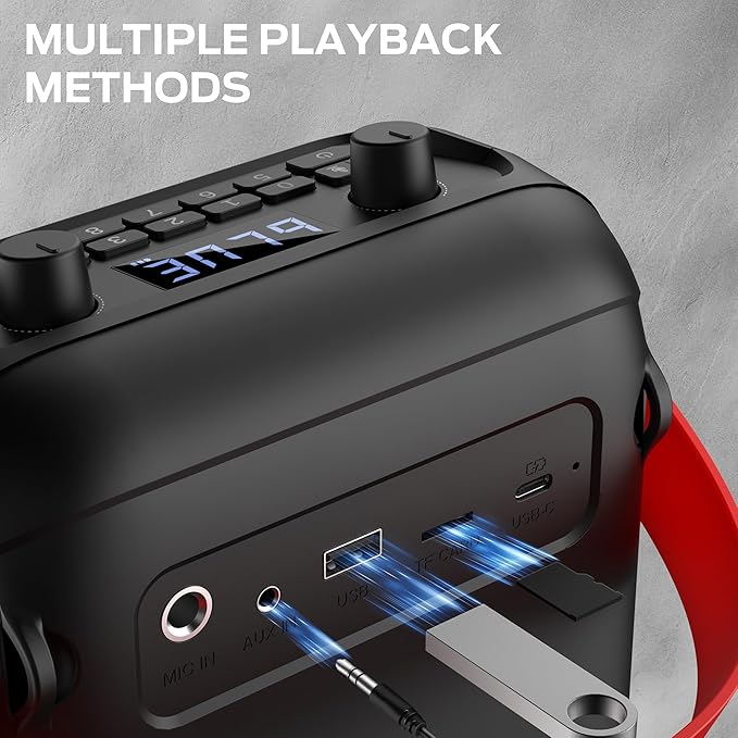 - 【 Multiple Connectivity Options 】 -- Loud Bluetooth speaker offers multiple audio source output options and supports such as AUX input, TF card slot, and FM radio. You can even plug in a USB drive and directly play your favorite music files through the buttons. This versatility means that you can easily switch between devices and sources, and never have to sacrifice your music-listening experience due to device compatibility issues.