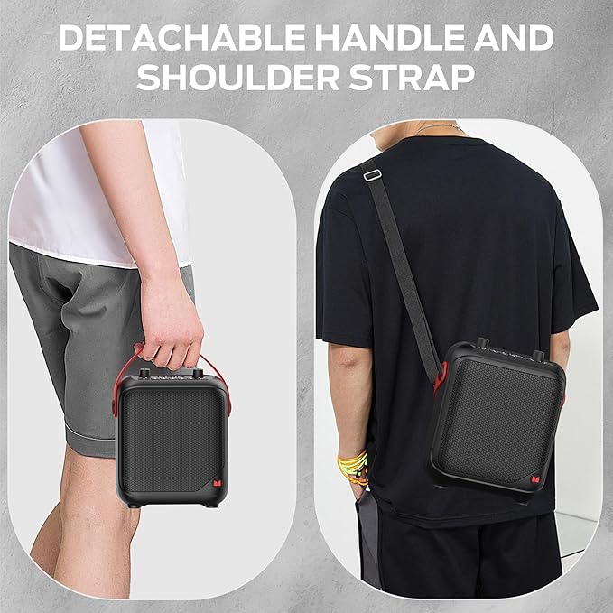 - 【 Compact and Portable 】 -- Removable silicone strap and shoulder strap design make the outdoor Bluetooth speaker perfect for ultimate convenience on the go, The shoulder is adjustable for a comfortable length, take it easy as a shoulder bag. Its powerful sound quality promises to keep going no matter where you are. Bring the music to the traveling, camping, beach trips, and outdoor activities.