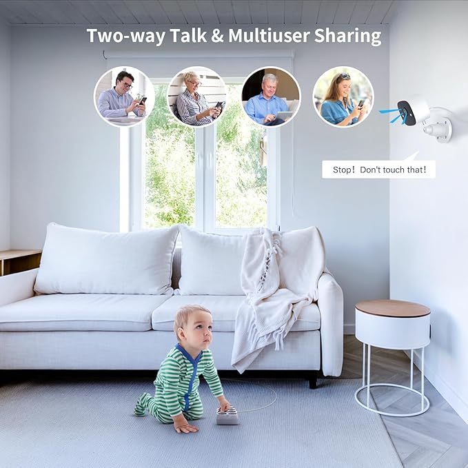 - 【TWO-WAY AUDIO & REAL TIME ALERT】This cameras for home security indoor built-in mic and speakers let you connect with family, baby, and pets two-way speak via the app, compatible with Alexa & PC & Mobile app to view the live video remotely and real-time alerts will be sent to your phone in case of suspicious activities to help you take timely action, siren, flashing white light or 5-way talk that both allow you drive away thieves and unwanted visitors.