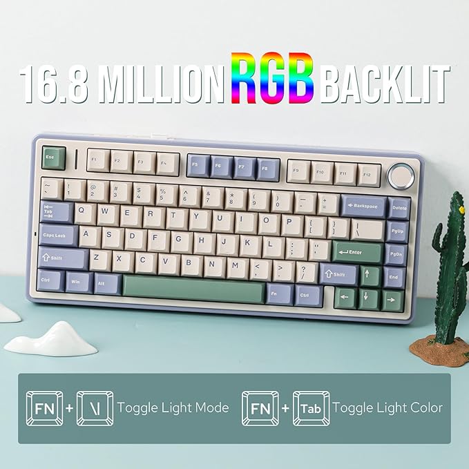 - 【Ultra-Responsive Low-Latency&Vibrant 16.8M RGB Illumination】Engage in the dynamic glow of the F75's RGB backlight, presenting a rich spectrum of 16.8 million colors for a personalized typing environment. Tailor lighting patterns to suit your preferences, creating a desktop atmosphere that adapts to your mood. With its ultra-responsive, low-latency connection, the F75 ensures each keystroke is not only vividly illuminated but also delivered with swift and unwavering precision, whether you're gaming or typing away.