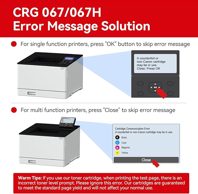 - 067 067H Toner with Chip: 067 Toner Cartridge High Capacity Set with built-in smart chip is engineered to ensure strong compatibility and accurate recognition