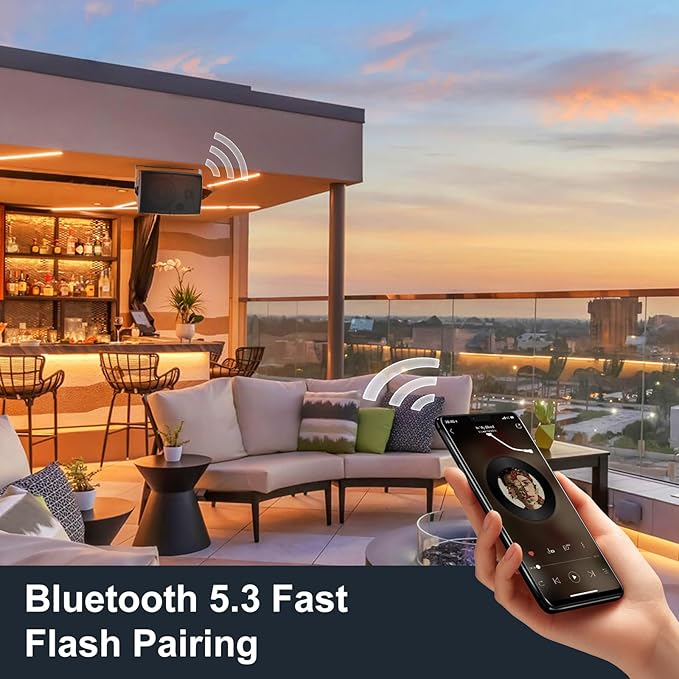 - 【Fearless in the Face of Moisture】: Boasting an IP44 ingress protection rating, this speaker guarantees resistance against heavy splashes and sprays.Built Tough for All Seasons,Crafted from high-quality, weather-resistant materials, this rugged speaker endures through blistering summers, biting winters, and everything in between. With its durable construction, it guarantees a long-lasting performance, transforming your outdoor living space into an all-season concert venue.