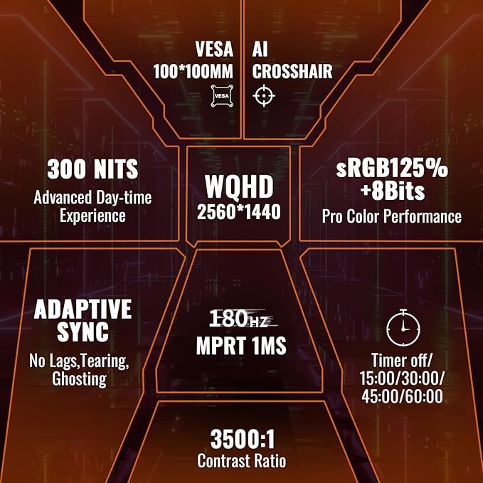 - Performance: 180Hz Refresh Rate | OD 1ms Response Time | FreeSync | Blue light reduction| Flicker-free
