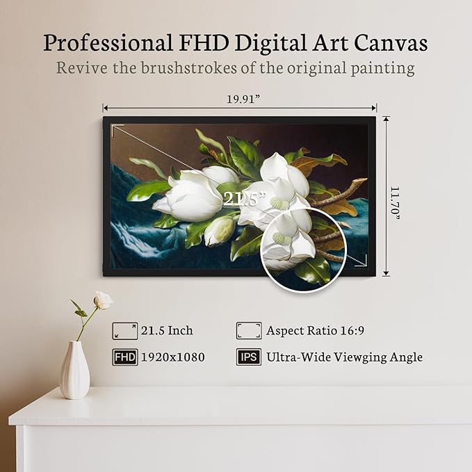 - 21.5 Inch FHD Touchscreen and Large Memory: BSIMB digital picture frame featured with 21.5 Inch 1920x1080 FHD IPS touchscreen and an aspect ratio of 16:9, digital frame displays stunning and clear images, which can revive the brushstrokes of the original painting. The digital picture frames built-in 32GB internal storage (holds 80,000+ pictures) with support for Micro SD Card (TF Card) and USB drive(Free bonus a USB drive). This photo frame electronic also with a remote control making it perfect for older or less tech-savvy people to operate. NOTE:The battery type for this remote is AAA+, not included in the package.