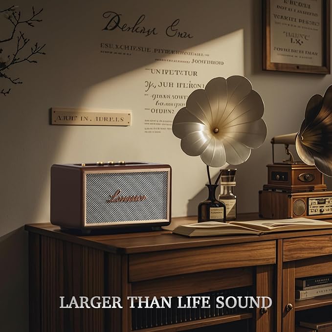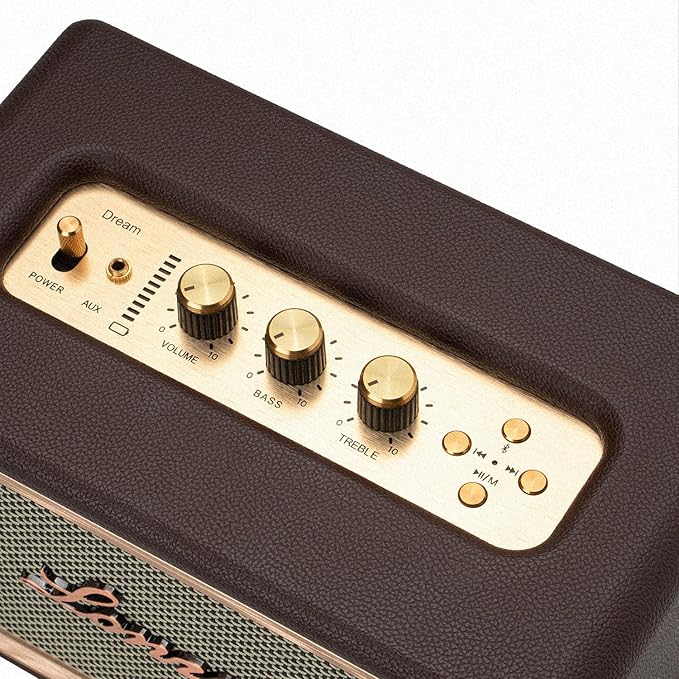 - 【Vintage Retro Wooden with Leather Wrapping Design】Vintage retro wooden bluetooth speaker offers super powerful bass subwoofer and treble volume knobs as the EQ system adjustment to easily adjust different sound effects according to your needs,Crafted with vintage retro style exterior design,durable wood frame and speaker fabric grill cover in the front panel and wrapped with premium genuine leather, which will also be the best option for a home speaker and home decor