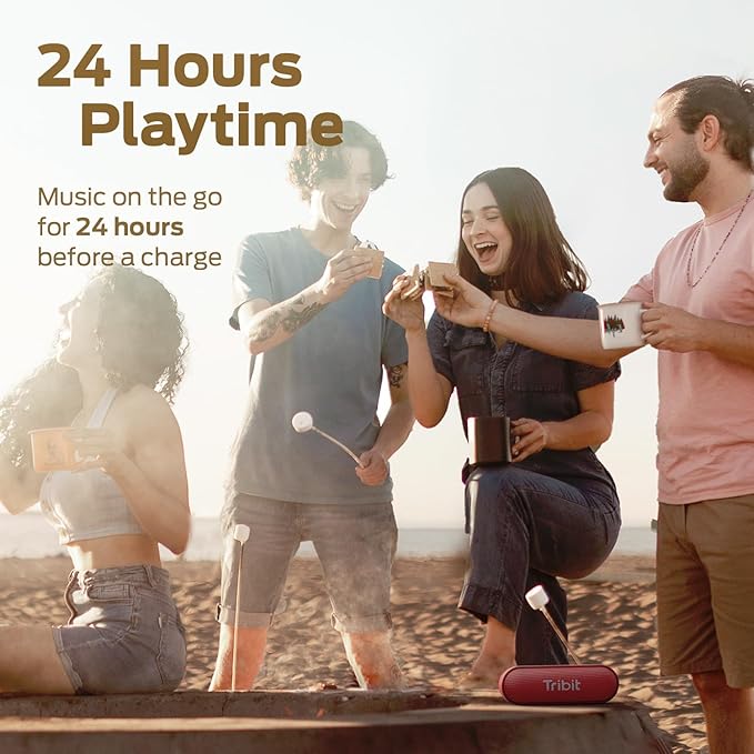 Tribit Bluetooth Speaker XSound Go, 16W Loud Sound & Deeper Bass, 24H Playtime, IPX7 Waterproof, Bluetooth 5.3 TWS Pairing Portable Wireless Speaker for Home, Outdoor (Red)
