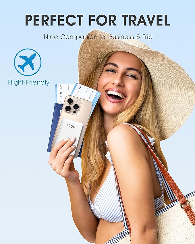 TG90° Portable Charger with AC Plug and Cables,5000mAh Slim Power Bank USB C Battery Pack,3 Outputs USB-C Fast Charging, Pocket Friendly Battery Travel Charger Compatible with iPhone Android Devices