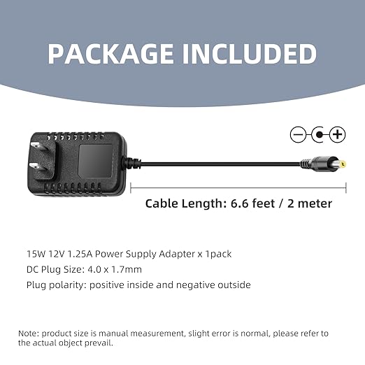 - 5. Package includes: 15W 12V 1.25A Power adapter x1, cable length: 6.6 ft / 2 m.