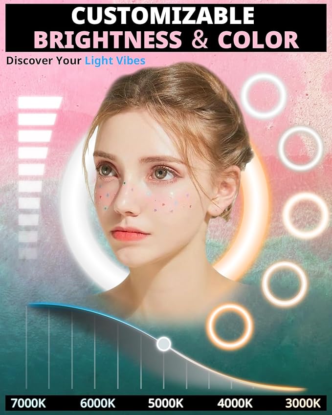 - 【Touch-Control Design】Our ring light features advanced touch-sensitive design, incorporating touch-sensitive power and adjustment keys, encompassing 5 levels of color temperature and 10 levels of brightness adjustment. Full control of your preferred light temperature and brightness in 10% increments to help you find the perfect light.