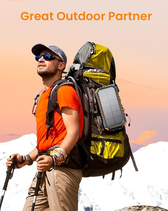 - [Rugged Design for Outdoor Adventures] Built to withstand the toughest outdoor conditions, our solar battery pack is Waterproof, Shockproof, and Dust-proof. Equipped with dual super bright LED lights, it's a must-have for outdoor activities and home emergencies.