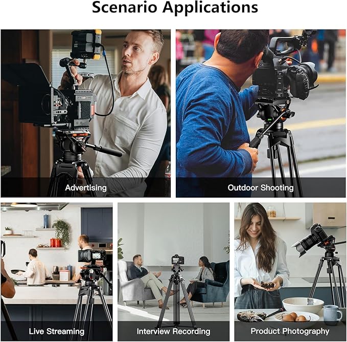 - 【Wide Compatibility】 The dual - mode QR quick release plate with 1/4" and 3/8" screw, capable of supporting DSLR cameras, camcorders, and many other devices. The tripod head also has a 1/4" threaded screw hole to mount monitor, LED video light