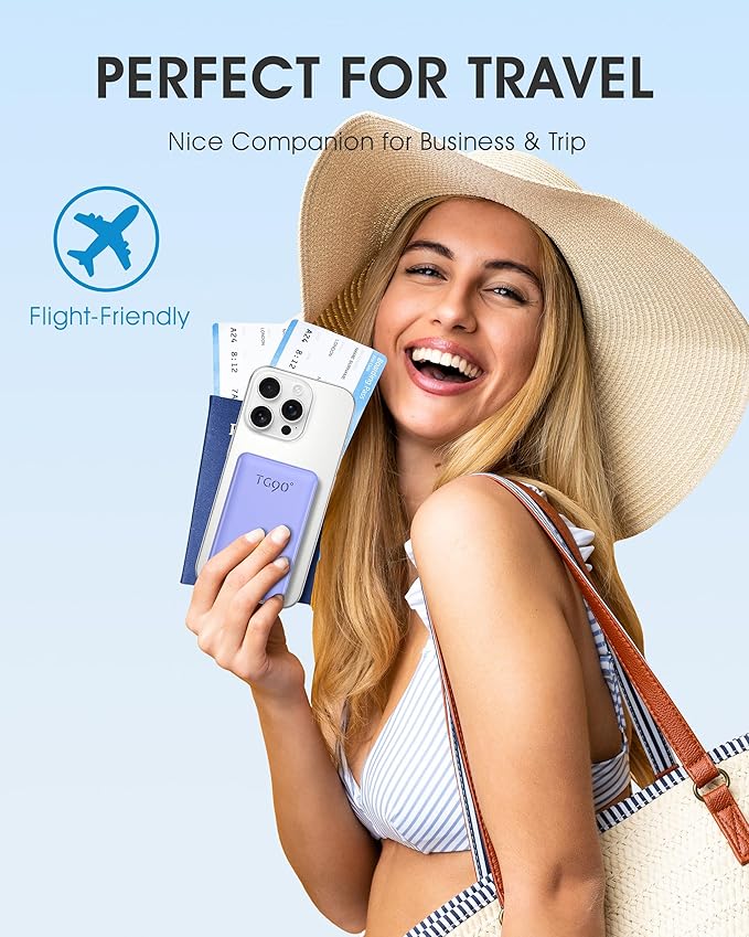 - Credit Card Size: With a super mini model with dimensions of 4.4 x 2.7 x 0.65 inches and 0.29 pounds, this power bank, size of credit card, slips your pocket more smoothly. A Good choice as travel accessories