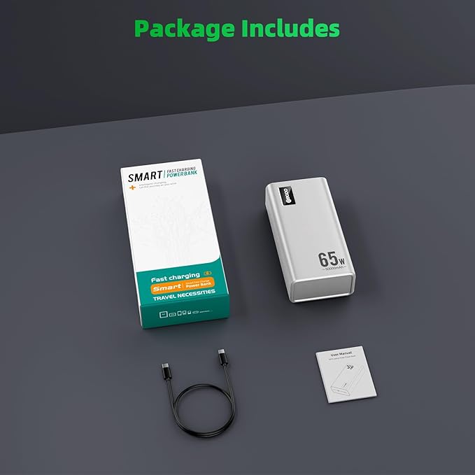 - 65W Fast Charging Power Bank: Support up to 65W fast charging, compatible with Macbook, Dell, Thinkpad and other laptop. Charging speed is faster than other power bank. Note: Only the type c output port can support 65W fast charging. The other 2 USB output ports can only support 22.5W fast charging.