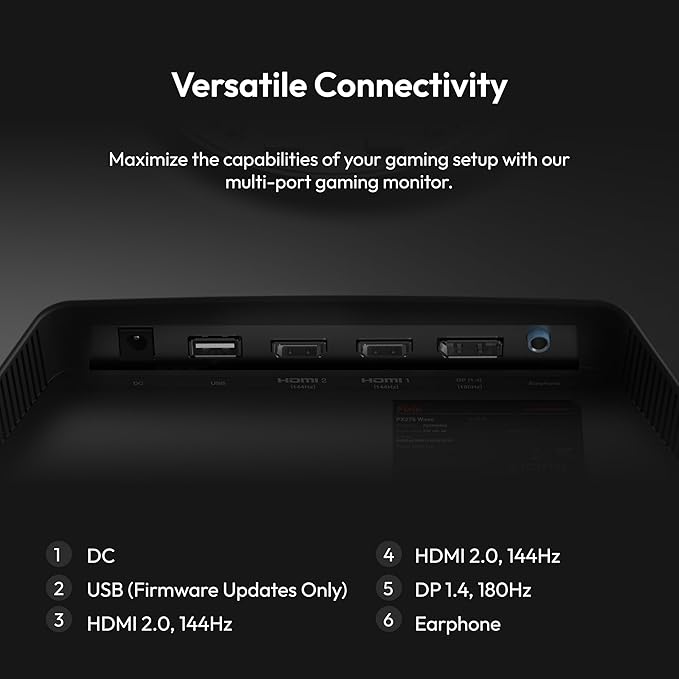 - Supports both HDMI and DisplayPort - There is one connection for DisplayPort 1.4 at 1440p@180Hz and two for HDMI 2.0 at 1440p@144Hz. This assures maximum compatibility for PC desktops, laptops, consoles, or any device that supports DisplayPort or HDMI.