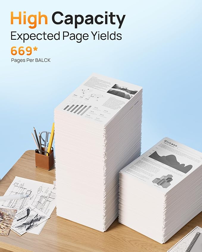 - Higher Cartridge yield (approx.): Up to 669 pages per 65xl 65 black (at 5% coverage of A4 paper)