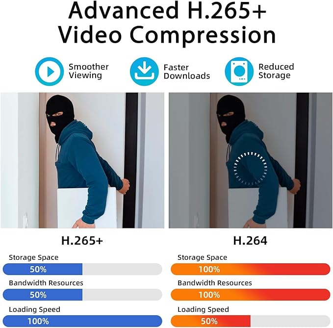 - 【Security-Grade 500G HDD & H.265+ Coding】This 8 channels DVR utilizes intelligent algorithms to adapt a high/low bitrate whether the scenario is complex ,H.265+ coding offers longer recording time before having to overwrite the older recordings, saving up to 50% of storage space than H.264 systems. You'll enjoy fast & smooth streaming without latency when accessing the DVR.And an included 500G hard drive saves you extra expense.
