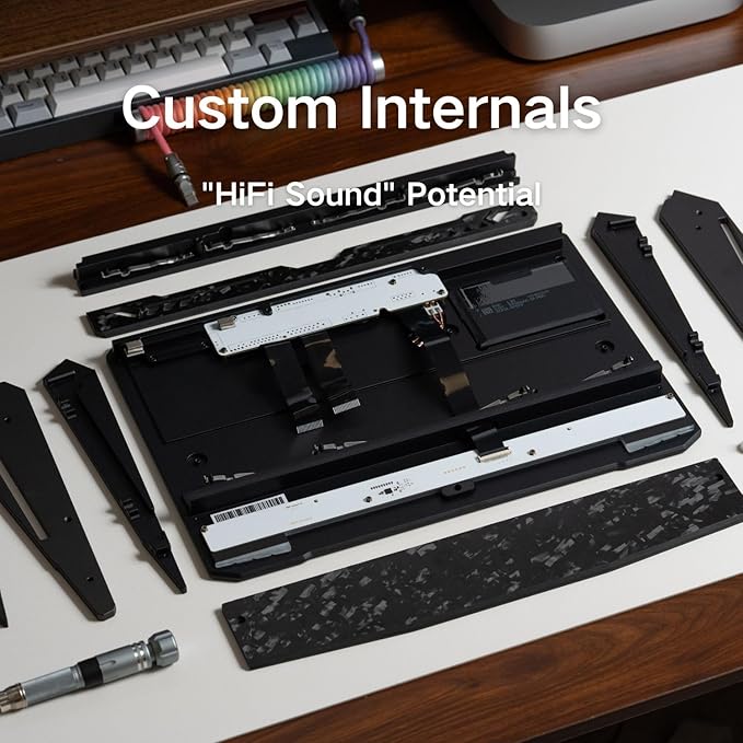 - 【Aluminum & Forged Carbon Build】This 75% mechanical keyboard features a CNC-machined aluminum frame and forged carbon fiber body, delivering a solid feel and premium look. The upgraded side panels reflect the sleek lines of a supercar, combining performance and aesthetics. Ideal for gamers and creators seeking a durable and stylish custom keyboard.