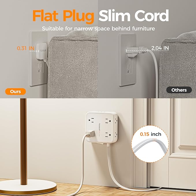 - 900J Surge Protector Outlet: This power strips with surge protection features overcurrent, overvoltage, overload, and short circuit protection, providing you with a safe and reliable charging environment; You can use it in home, office and dorm room