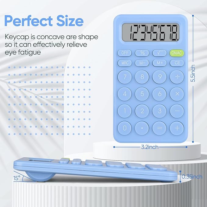 - Portable and Convenient: With a mini size of 5.5" x 3.2", this calculator features an automatic sleep function that allows two years of use. It's light and compact, easy to slip into your pocket or bag, perfect as a pocket calculator, or desk calculator.