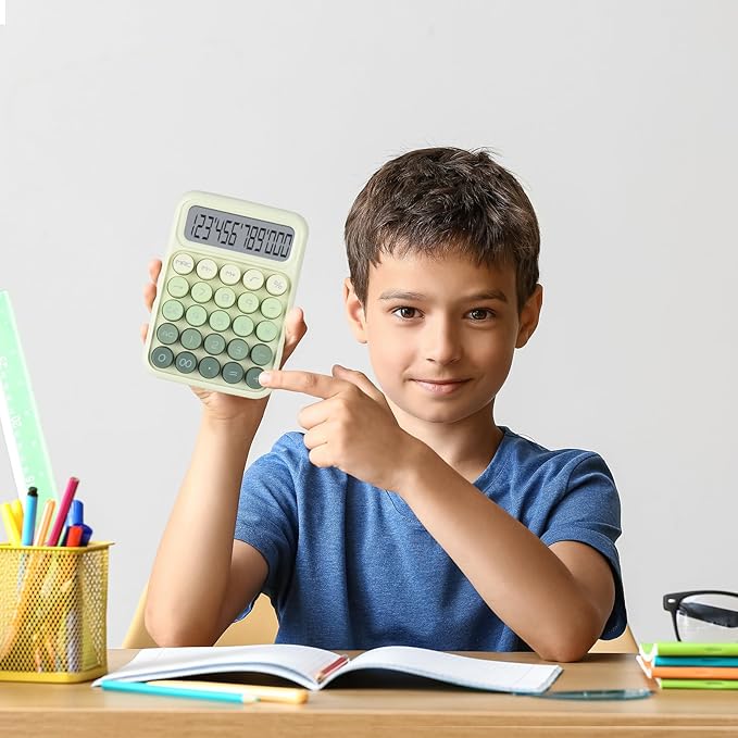 Mechanical Pushbutton Calculator,12 Digit Large LCD Display,Big Buttons Easy to Press,Colorful Candy Calculator,Automatic Sleep,with Battery.for Office,School, Home. (Green)