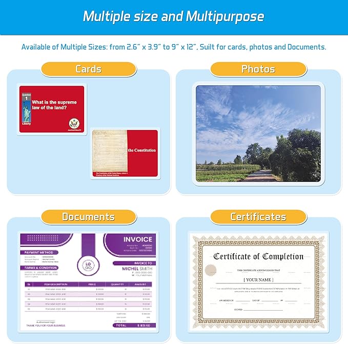 - Peace of Mind: With our self-seal laminating pouches, you can rest easy knowing your valuable photos are protected. Whether it's for home, school, or office use, our pouches provide peace of mind and long-lasting protection for all your laminating needs.