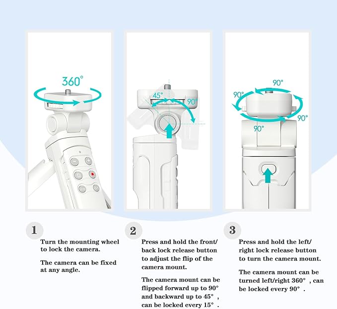 - Quick and Easy Direction Changes - You can manually change the shooting direction, you can adjust to the angle you want. Parallel direction: Up: 45 degrees, Down: 90 degrees. Left and right direction: Can rotate 360 degrees, rotate to 90° lock, it can provide stable shooting.