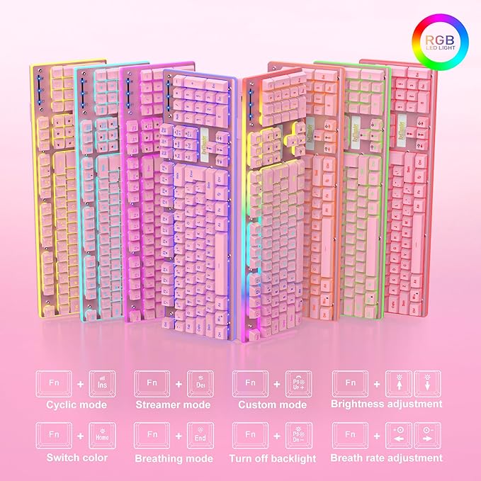 RedThunder K10 Wired Gaming Keyboard and Mouse and Wrist Rest Combo, RGB Backlit, Mechanical Feel Anti-ghosting Keyboard + 7D 7200 DPI Mice+Soft Leather Wrist Rest 3 in 1 PC Gamer Accessories(Pink)