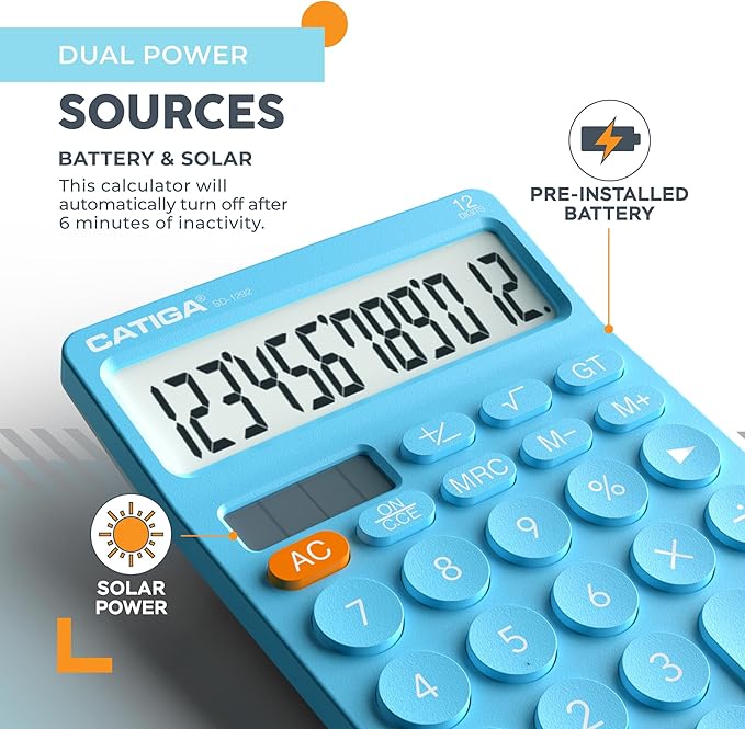 - 【Essential Cute Calculator for School and Study】The CATIGA 12-digit desk calculator is a cute calculator designed for students and daily users. Its lightweight, colorful build makes math tasks fun and easy. Perfect as a desktop calculator for school, home, or office, it delivers reliable performance with vibrant style.