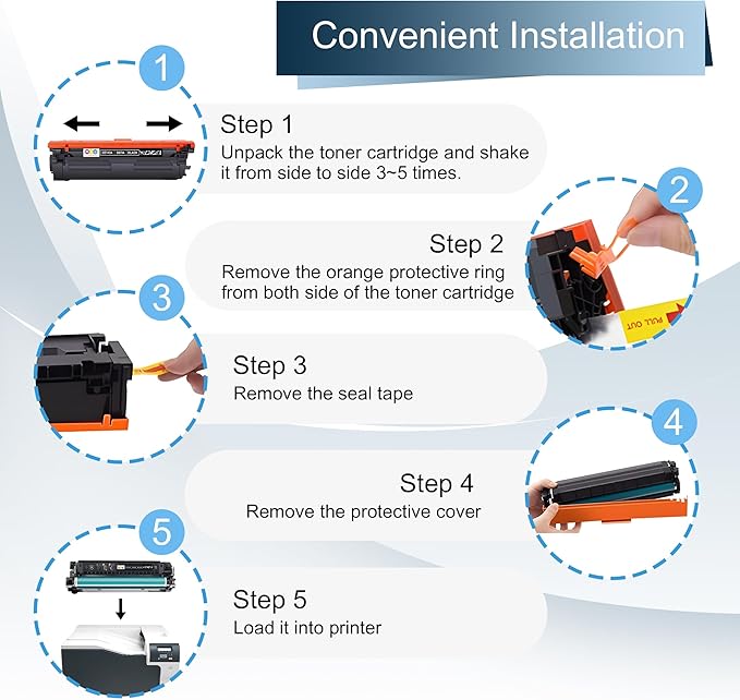 - Easy Installation & Wide Application: the 307A toner cartridges is convinent & fast installation, which can be applied to office, school, home, bank, etc