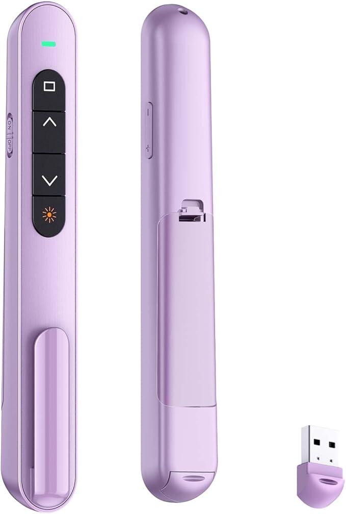- 【KEY TOOL AND COMPANION】This slide clicker is very practical for mobile presenters because it comes with a portable clip that can be clipped on a book or pocket for easy carrying. Lightweight and portable, comfortable to wear, this presentation pointer control is a useful helper for meetings, training, and presentations. Multiple color styles will be helpful for giving to friends and family