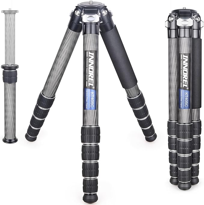 INNOREL KT405C Compact Carbon Fiber Camera Tripod 40mm Max Tube Professional 5 Sections Travel Tripod for Digital DSLR Video Camcorder Heavy Duty Camera Stand Load 77.2lb/35kg with Center Column