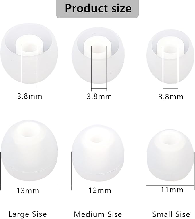 - 1.Wide range of uses:Silicone replacement earbud tips for In-Ear Earphone inner hole from 3.8mm-5.1mm(Not necessarily able to fit into a Bluetooth charging box).