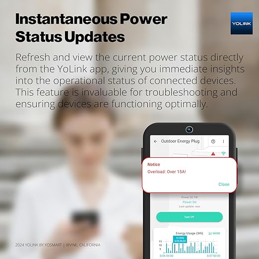 - Instantaneous Power Status Updates: Refresh and view the current power status directly from the YoLink app, giving you immediate insights into the operational status of connected devices. This feature is invaluable for troubleshooting and ensuring devices are functioning optimally.