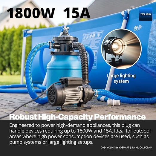 - Robust High-Capacity Performance: Engineered to power high-demand appliances, this plug can handle devices requiring up to 1800W and 15A. Ideal for outdoor areas where high power consumption devices are used, such as pump systems or large lighting setups.