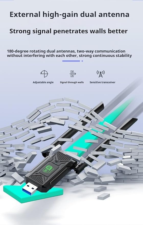 - WiFi adapter with dual 2dBi high gain antennas, greatly enhance the WiFi signal reception and transmission strength to make wifi stable, 180° rotatable antenna provides stronger wireless transmission, can receive signals from any angle, it is recommended to tilt the antenna 40~60 degrees to get better wifi signal.