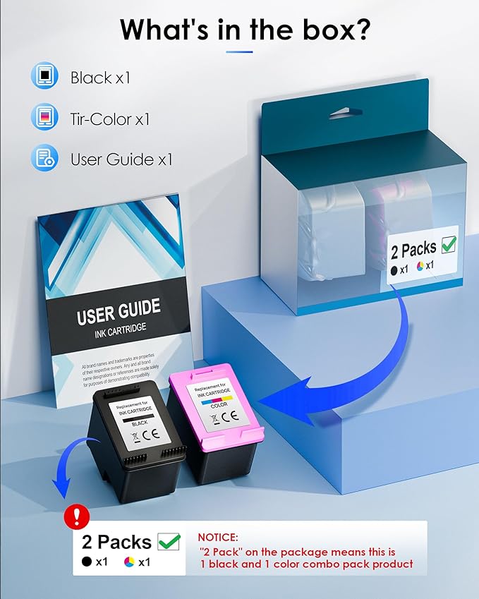 - Package Contents: 2 x 65XL black ink cartridge, 1 x 65XL color ink cartridge, 1 x User Guide β (T0A36AN)