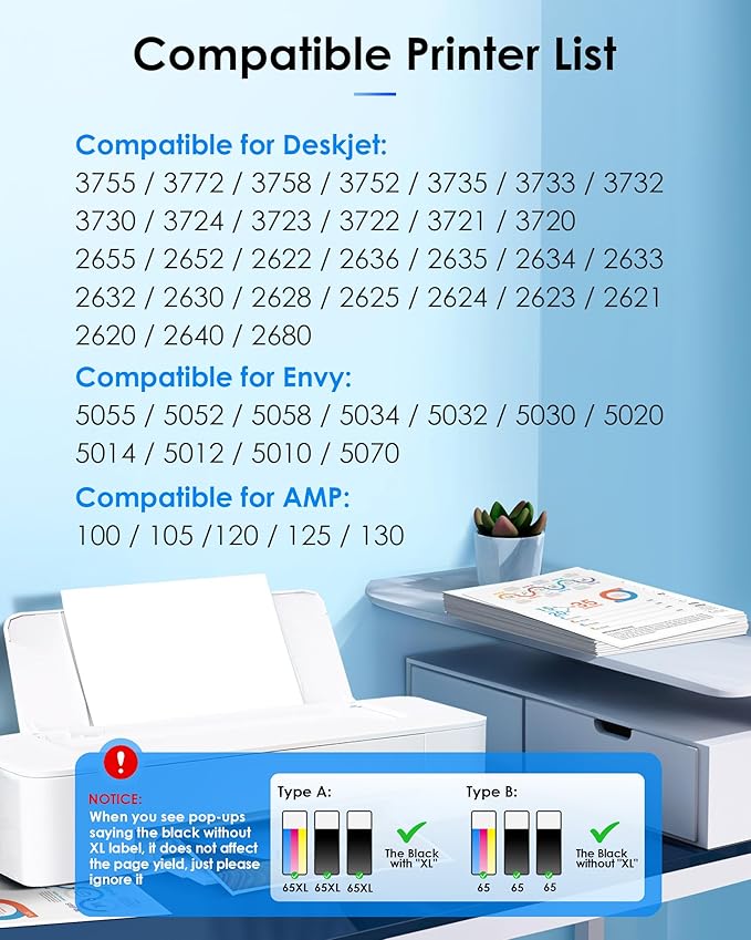 - Compatible Devices : Deskjet 3772, 3755, 3758, 3752, 3735, 3733, 3732, 3730, 3724, 3723, 3722, 3721, 3720; ENVY 5055, 5052, 5058, 5034, 5032, 5030, 5020, 5014, 5012, 5010, 5070; Deskjet 2655, 2652, 2622, 2636, 2635, 2634, 2633, 2632, 2630, 2628, 2625, 2624, 2623, 2621, 2620, 2640, 2680; AMP 100, AMP 105, AMP 120, AMP 125, AMP 130 Deskjet 3772, 3755, 3758, 3752, 3735, 3733, 3732, 3730, 3724, 3723, 3722, 3721, 3720; ENVY 5055, 5052, 5058, 5034, 5032, 5030, 5020, 5014, 5012, 5010, 5070; Deskjet 2655, 2652, 2622, 2636, 2635, 2634, 2633, 2632, 2630,β¦ See more