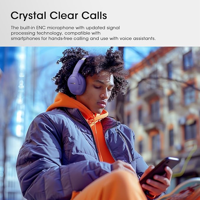 - Bluetooth 5.3 & Built-in ENC Microphone: Over the ear headphones wireless bluetooth carrying latest Bluetooth 5.3 chip, ensures an ultra fast and stable connection up to 66 feet (20 meters) and provide lower latency and better audio output. With the latest signal processing technology, built-in ENC microphone, supports ENC noise cancelling for calls, and is compatible with smartphones so you can talk clearly even on noisy streets