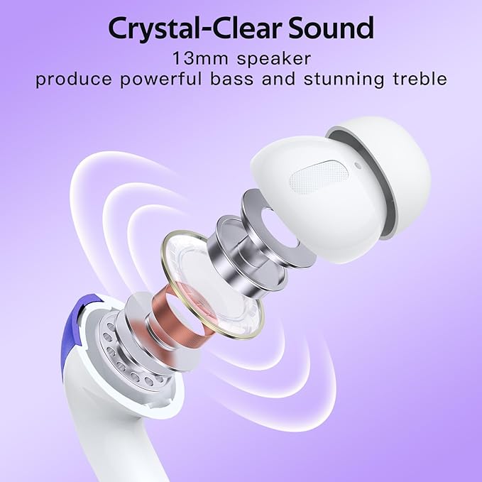 - Superior Clear Call and Immersive Stereo Sound: These music earphones with 13mm speakers and triple-layer composite diaphragms provide powerful bass, stunning treble and clear mids. These earbuds are designed for sound and music lovers. It can support the mono mode and twin stereo mode, you can share the earbuds with your friends and families. Each earbud has a build-in microphone for phone calls. CVC noise reduction can make others hear your voice very clearly while phone calls