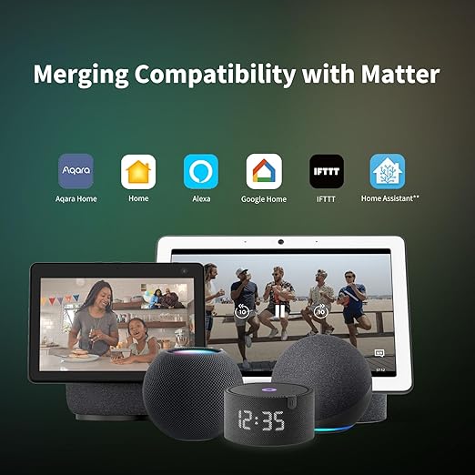- [Compatibility Features] The Dual Relay Module T2 is compatible with a variety of mainstream ecosystems, like Matter (A Matter compatible Aqara hub is required), Apple HomeKit, Alexa, IFTTT, and the Aqara Home app. This broad compatibility allows for easy integration into diverse smart home setups and usage in smart home automation