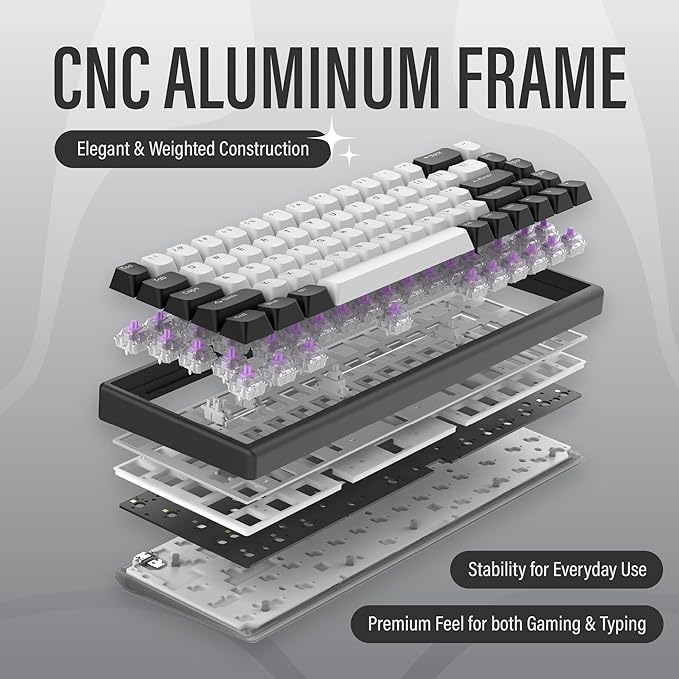 - CNC Aluminum Frame: Elegant, weighted construction provides stability and a premium feel for both gaming and typing.