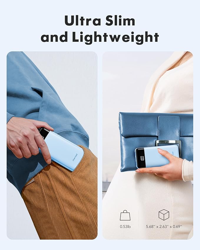- 【Super Slim & Smart: See Your Exact Battery Level】Incredibly pocket-friendly design,lighter and slimmer than most phones! Always know exactly how much power is left thanks to the clear digital LED display. Never get caught off guard with a dead power bank again. Perfect for travel and daily carry!