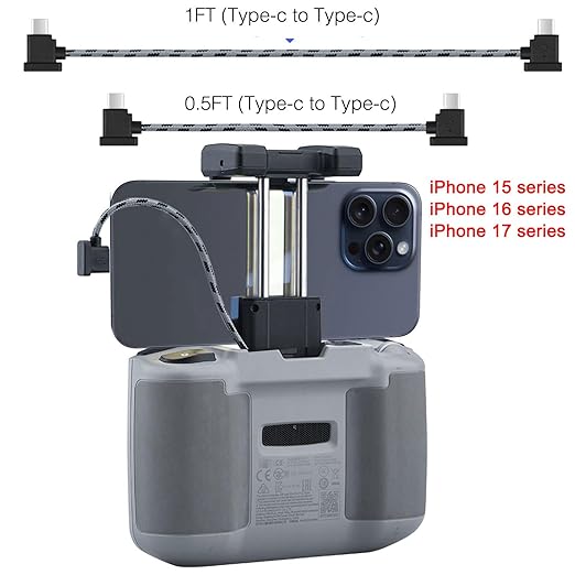 1FT+ 0.5FT(2 pack) USB C to USB C Remote Controller Cable for IPhone 17/16/16e/15 Pro Max, DJI Mavic 3/4 Pro/Air 2/2S, Mini 2/3/4/5 Pro,RC-N1,RC Pro to Tablet Cable 90 Degree Data OTG Cord Accessories