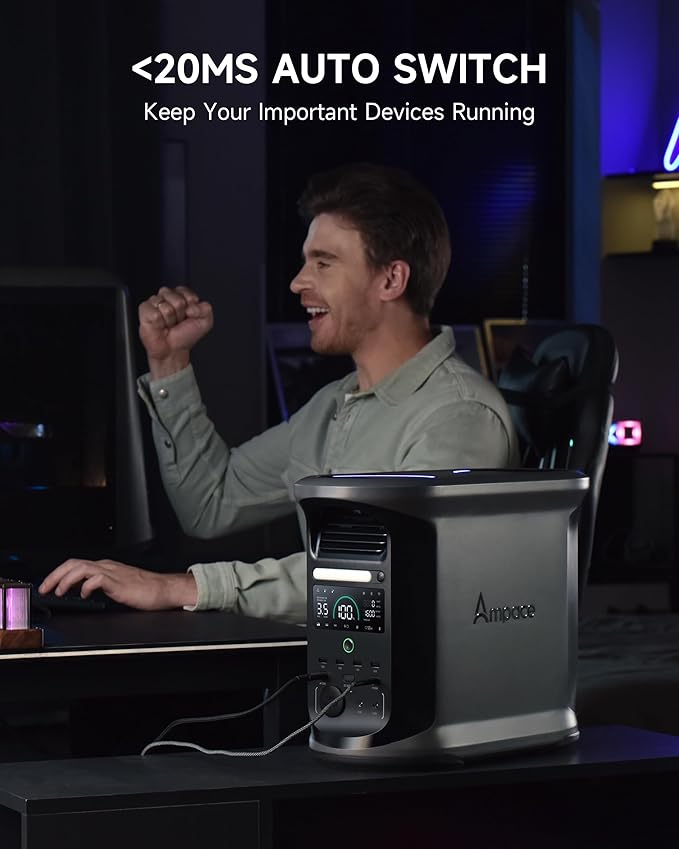- QUIET AND RELIABLE HOME BACKUP – The Ampace Andes 1500 solar generator combines user-friendly operation with robust engineering, ensuring effortless use. With a near-silent 30dB sleep mode and rapid 20ms EPS switchover, it's ideal for outdoor camping, off-grid living, home backup and emergencies.
