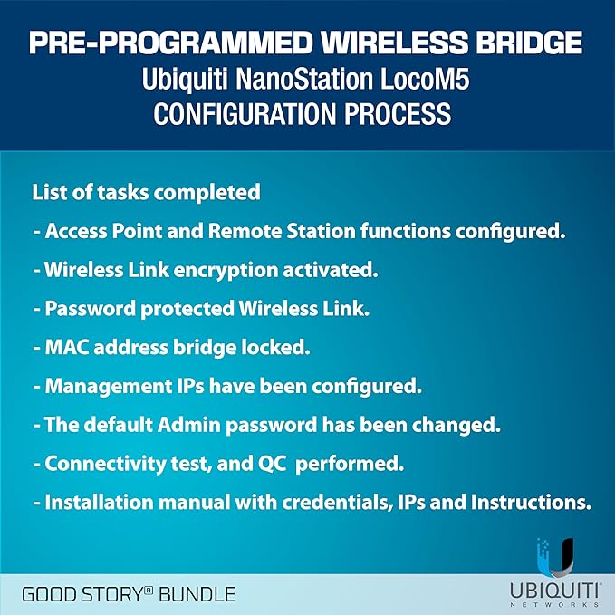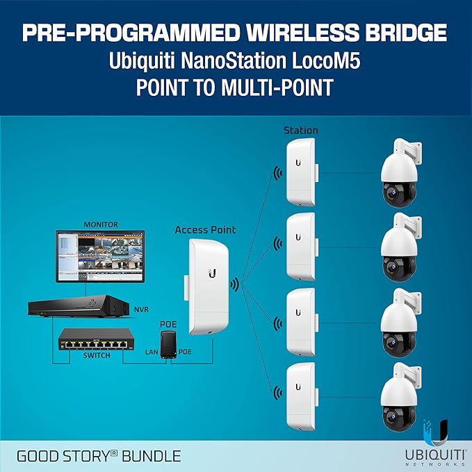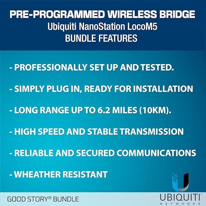 Wireless Bridge LOCOM5 PRE-Programmed Bundle of 2 Ubiquiti Nanostation LOCO M5, Point to Point Outdoor WiFi Bridge, Plugh and Play, 5GHz, 150+Mbps, 15+km Link Range Network Wireless Bridge.
