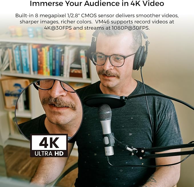 VM46 Wireless Live Streaming Camera, 4K Camera for Streaming with 8-Mic Noise Canceling Array, 60X Hybrid Zoom, 6H Battery, App Control,Stream to YouTube/Twitch/Facebook/RTMP via LTE/Wi-Fi