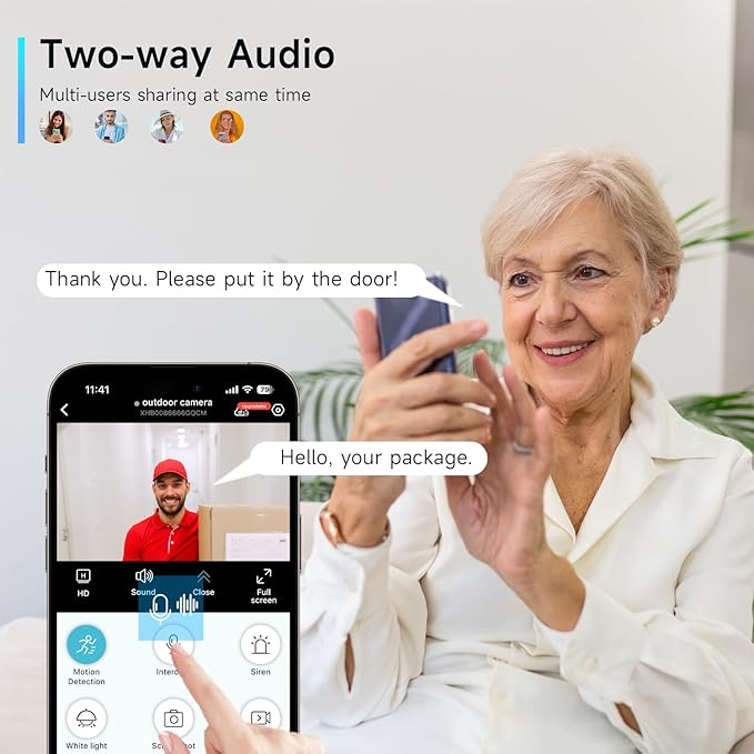 - 【Two-Way Audio & Alexa Integration】 "Alexa, show the front yard!" Control this 5G security camera hands-free. Communicate clearly with visitors, scold trespassers, or soothe pets through your smartphone. Live-stream footage on Alexa for real-time monitoring.