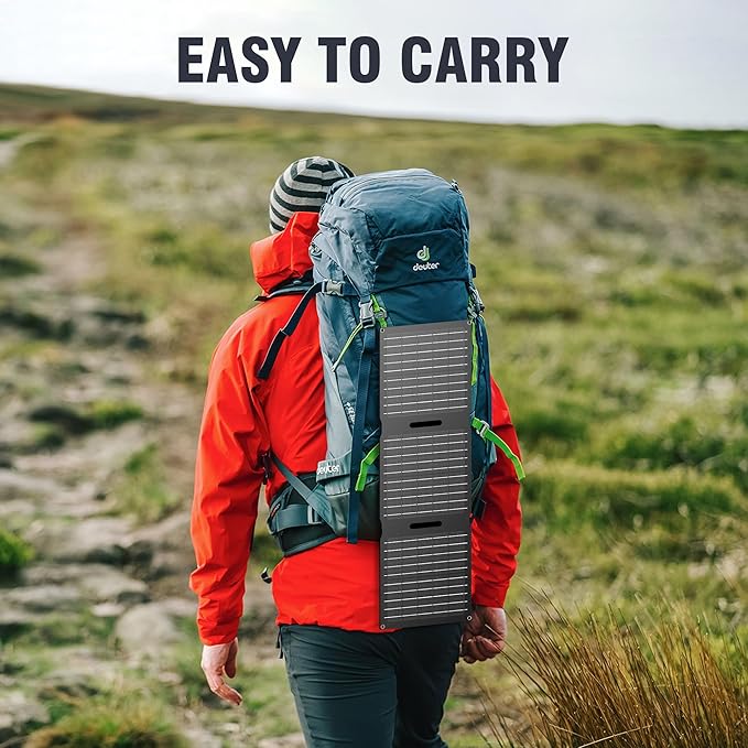 - 🌍COMPACT & LIGHTWEIGHT: The folded size of ZeroKor 22W solar power charger is 8.7*9.7*1.4 in(unfolded size is 25.6*8.9*1.2 in), and only weighs 1.32 lbs, when you take it out, it won't take up too much space in your suitcase or backpack, a camping essential for people who want to travel light